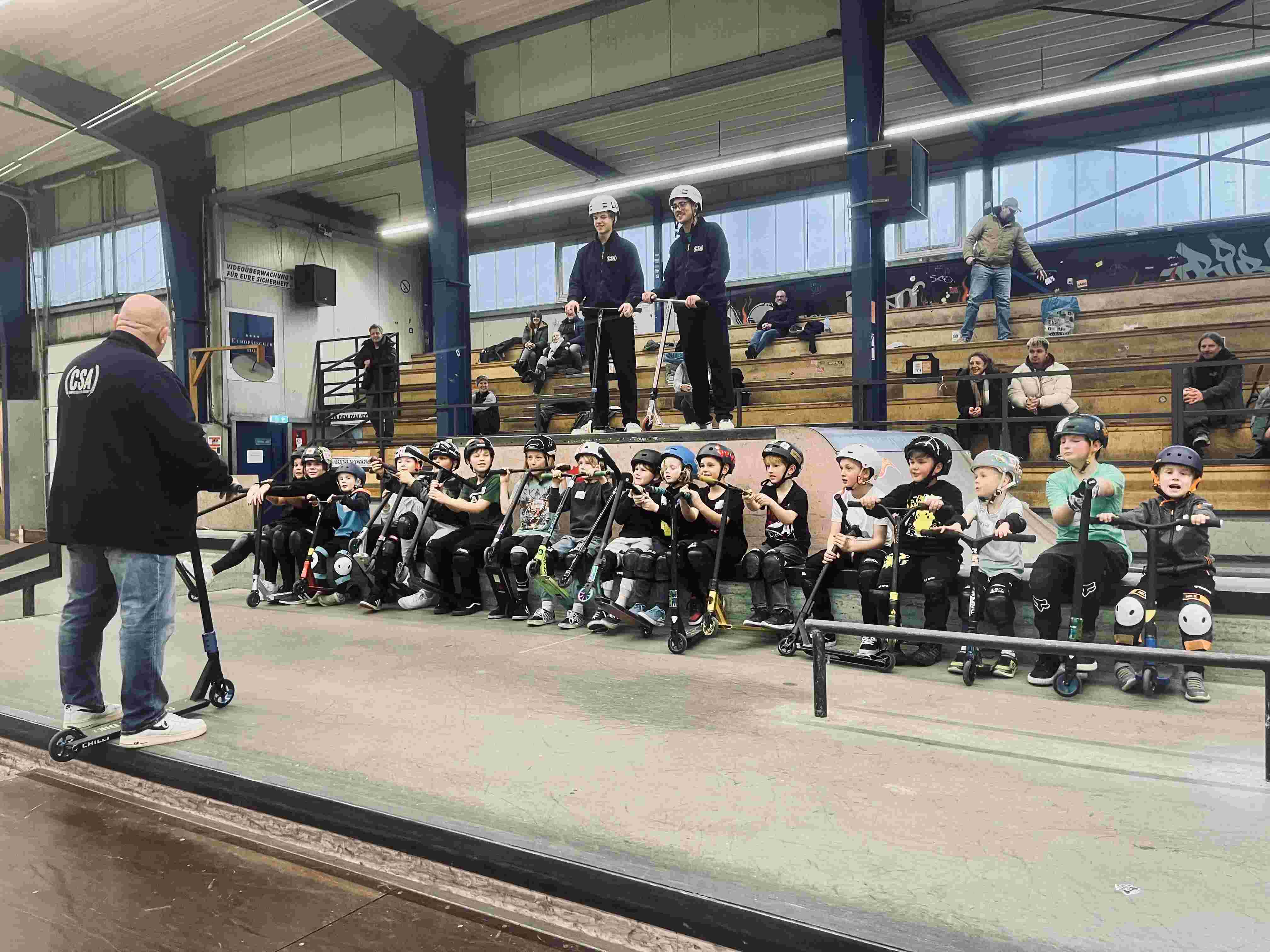 Du brauchst einen Stunt Scooter, also einen Roller, der nicht klappbar und auch nicht höhenverstellbar ist. Tretroller/Cityroller oder auch Klapproller genannt, sind nicht erlaubt da diese während des befahren der Rampen zusammenklappen oder durch die Druckbelastung einbrechen können. Achte bitte auch darauf das dein Stunt Scooter sich in einem guten Zustand befindet wie zum Beispiel, das die Bremse festsitzt, die Kompression angezogen ist und der Lenker kein Spiel hat, das die Barends (die Stopfen am Lenkerstangenende) auch angebracht sind, alle Achsschrauben und Clamp Schrauben kontrolliert sind……nur ein gepflegter und gewarteter Stunt Scooter ist auch ein sicherer Scooter und macht dir beim Fahren richtig spaß.